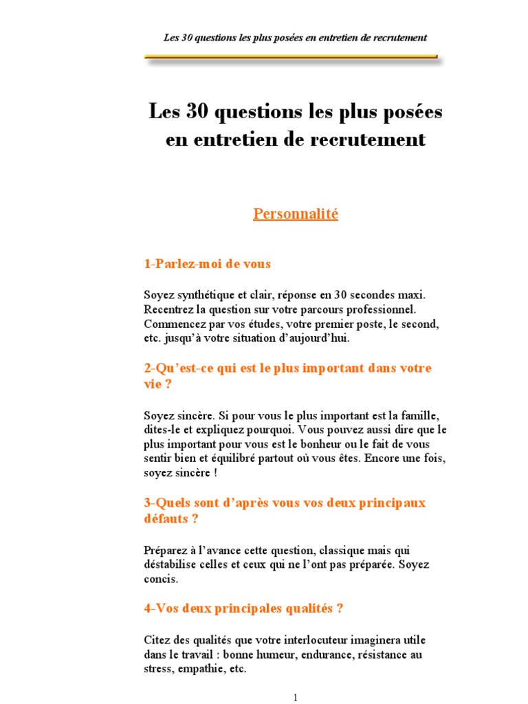 Liste Des 51 Questions Les Plus Posées En Entretien D’embauche